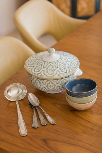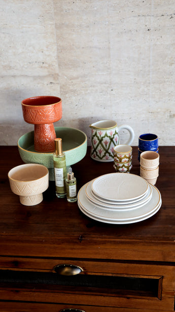 Notre sélection se veut authentique, raffinée et délicate, déclinable dans tous les intérieurs et aux envies de chacun. Retrouvez alors toute une sélection d’art de table qui représente passionnément le renouveau de l'artisanat marocain. Assiette, plat, tasse, verre, beurrier, bol, saladier, plat et plateau… typiquement aux accents d’Orient vous font plonger dans l’effervescence de la Medina et embrasser le savoir-faire artisanal du Royaume.