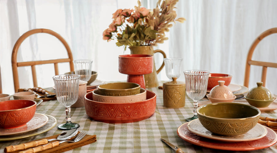 Notre sélection se veut authentique, raffinée et délicate, déclinable dans tous les intérieurs et aux envies de chacun. Retrouvez alors toute une sélection d’art de table qui représente passionnément le renouveau de l'artisanat marocain. Assiette, plat, tasse, verre, beurrier, bol, saladier, plat et plateau… typiquement aux accents d’Orient vous font plonger dans l’effervescence de la Medina et embrasser le savoir-faire artisanal du Royaume.
