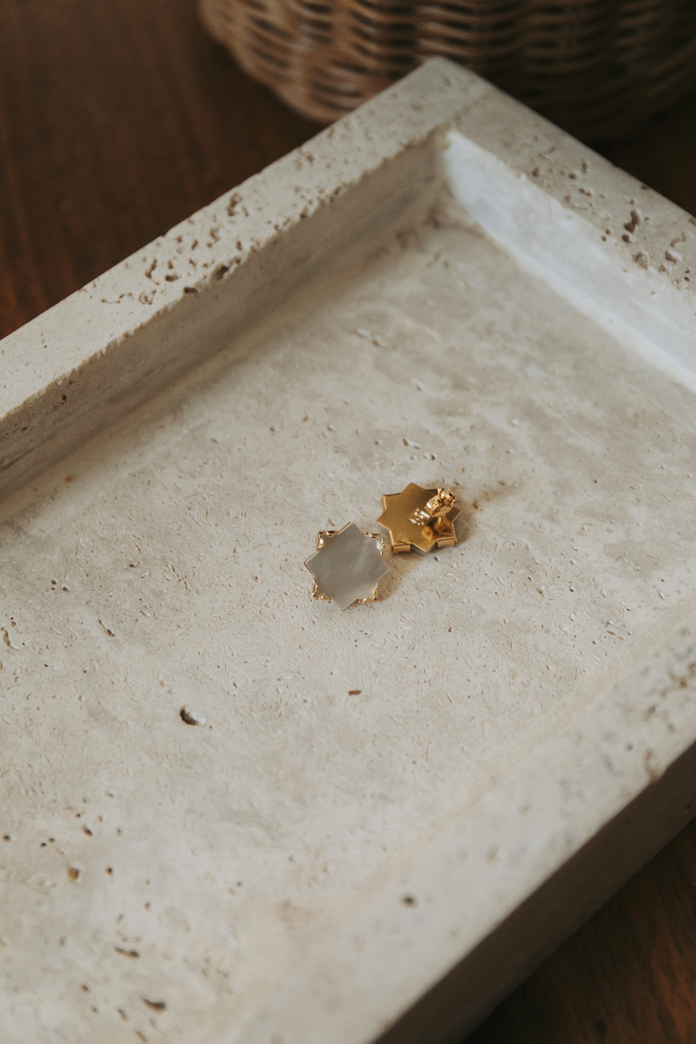 - Material: 18k gold-plated brass. genuine mother-of-pearl