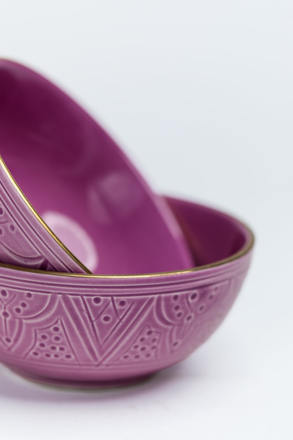 What a pleasure it is to enjoy your dishes in beautiful rooms! But let's not forget that the moment of preparation is just as important. Round bowls and salad bowls are undoubtedly the most popular shapes for preparing your dishes. You'll love using our LILAS GOLD BOLS BAS EMPREINTE.