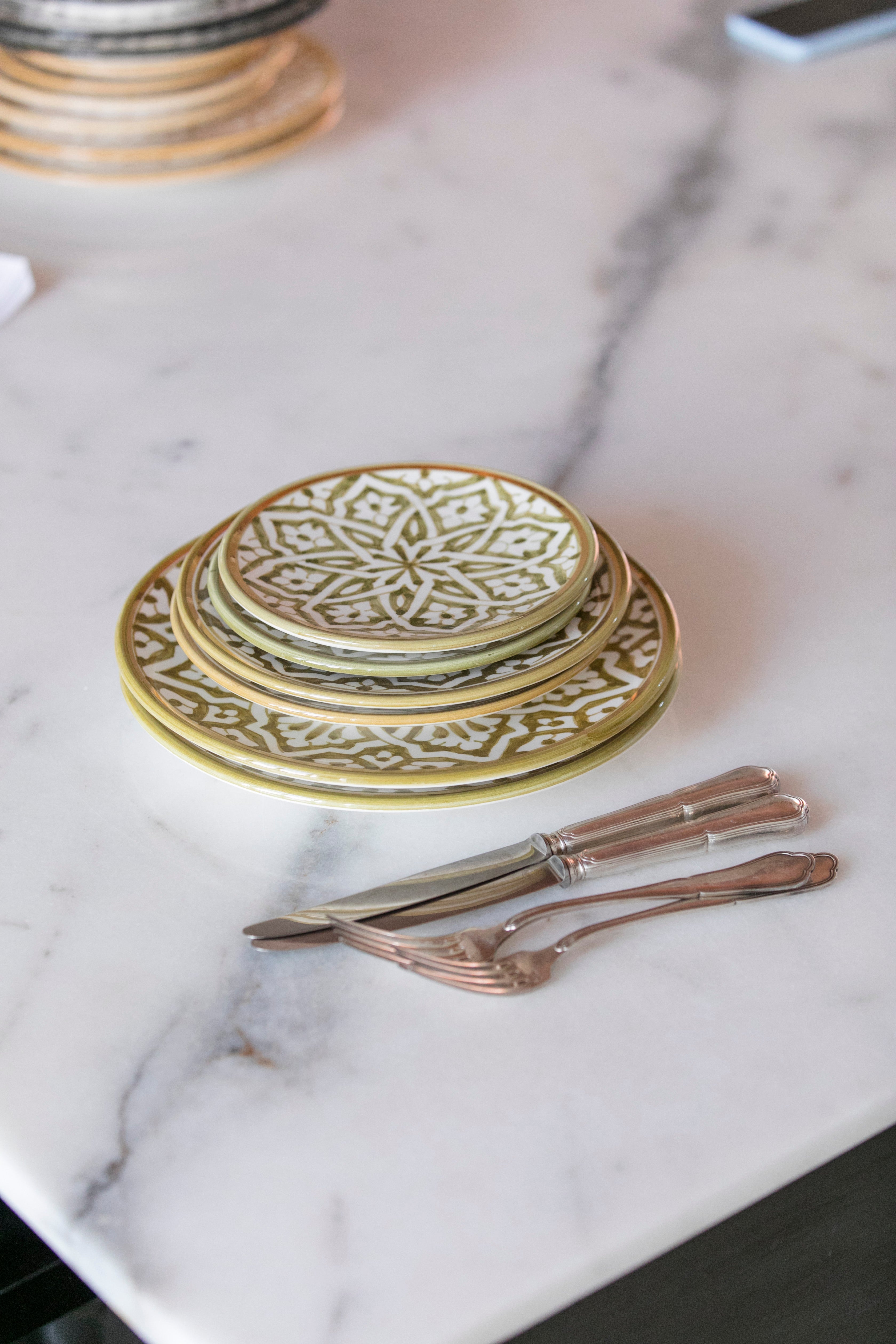 Discover our Fassia khaki gold plates, emblematic and highly prized pieces from our brand. A real centerpiece for your table, they offer the ideal playground for Chabi-Chic Mix&Match. Their versatility means you can mix and match them endlessly, whether as a total look or as a mismatch, and the effect is always striking.
