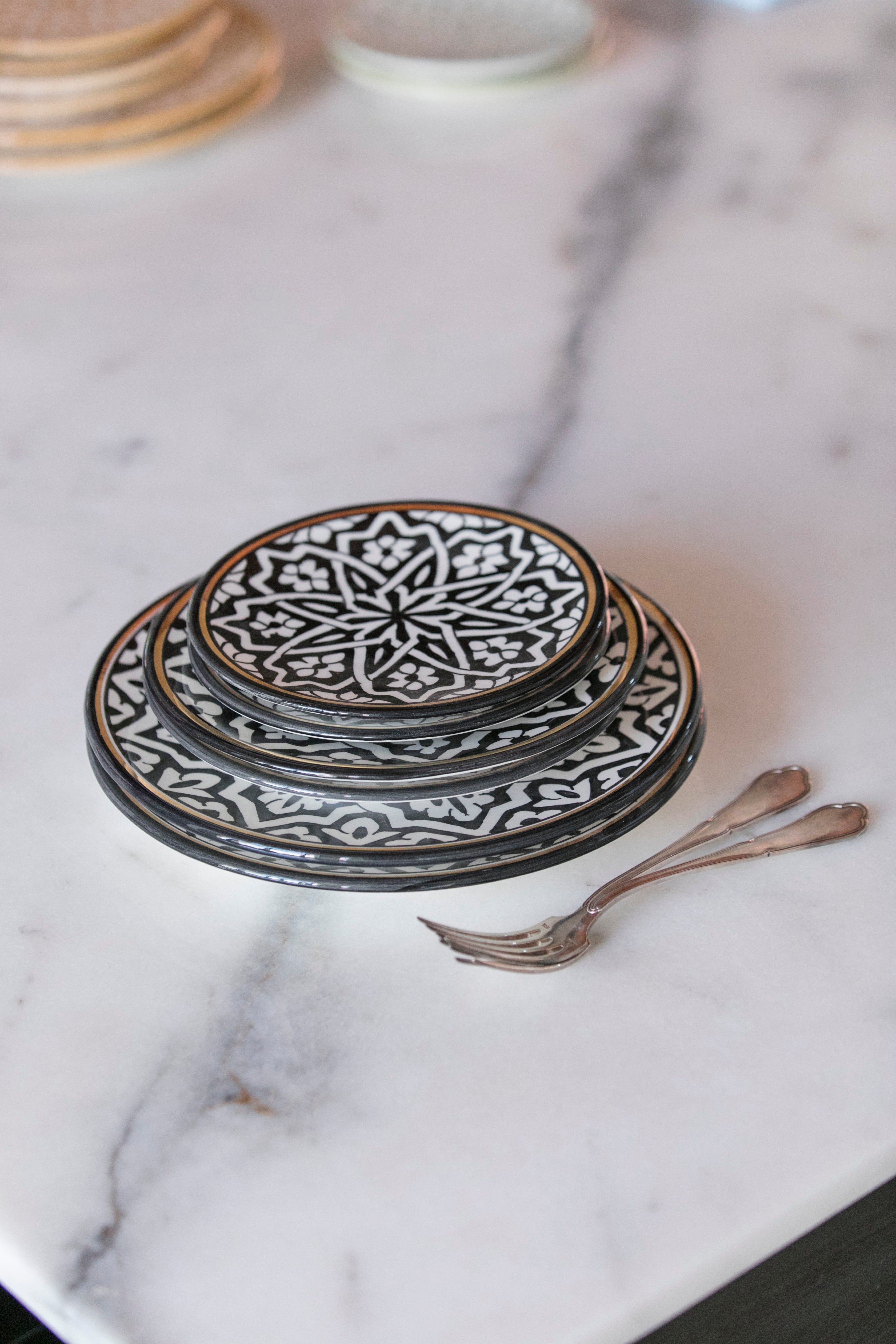 Discover our gold-black Fassia Plates, emblematic and highly prized pieces from our brand. A real centerpiece for your table, they offer the ideal playground for Chabi-Chic Mix&Match. Their versatility means you can mix and match them endlessly, whether as a total look or as a mismatch, and the effect is always striking.
