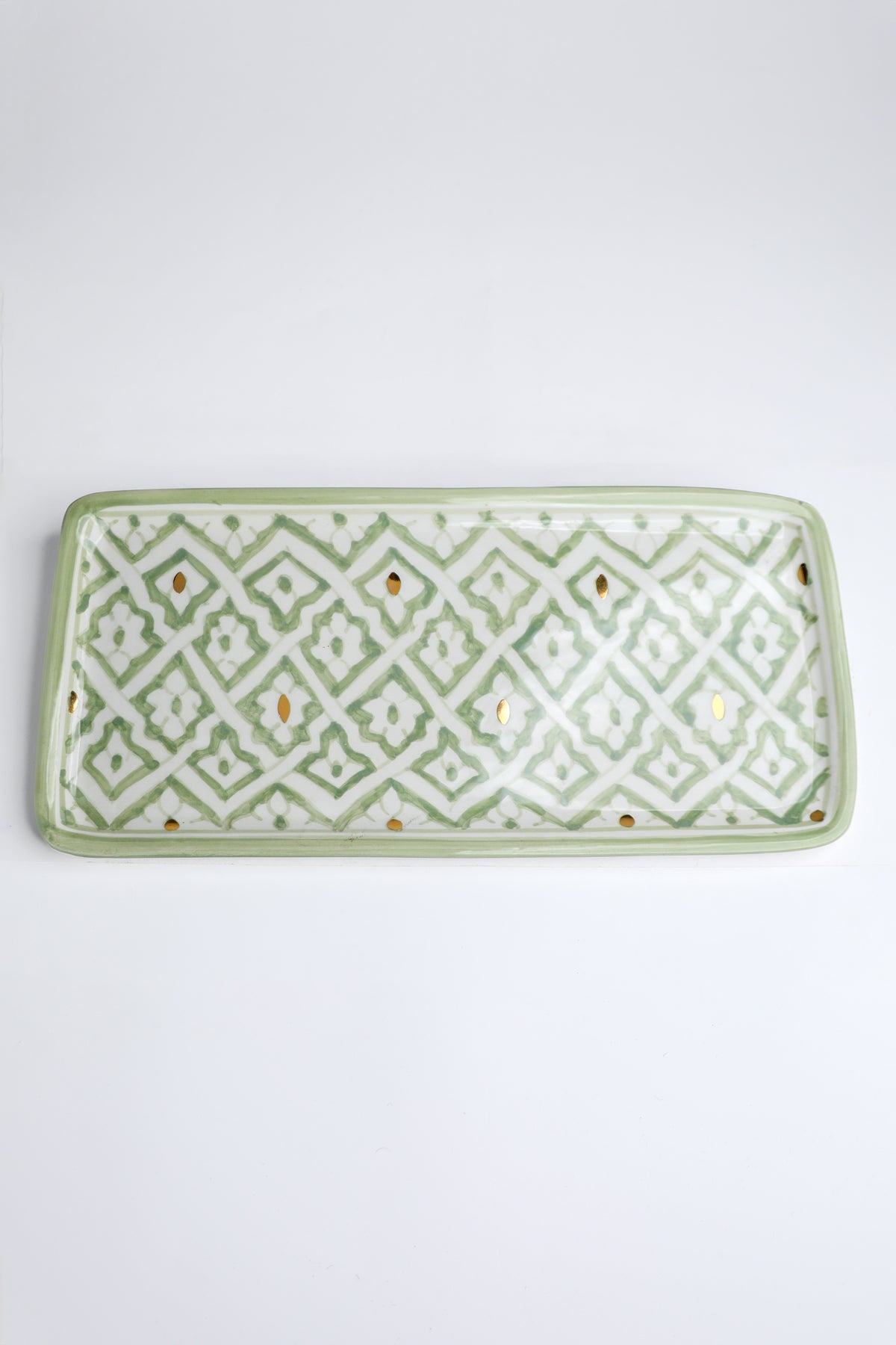 Give your sweet treats the platter they deserve with our Fassia Mint gold cake platter. Ideal for presenting your cakes, gateaux or even quiches, this platter combines elegance and practicality. Its refined, handcrafted design adds a charming touch to your table, whether for special occasions or a family tea party. This dish can also be used as a decorative tray in other rooms of the house, such as on a beautiful coffee table or in a bathroom.