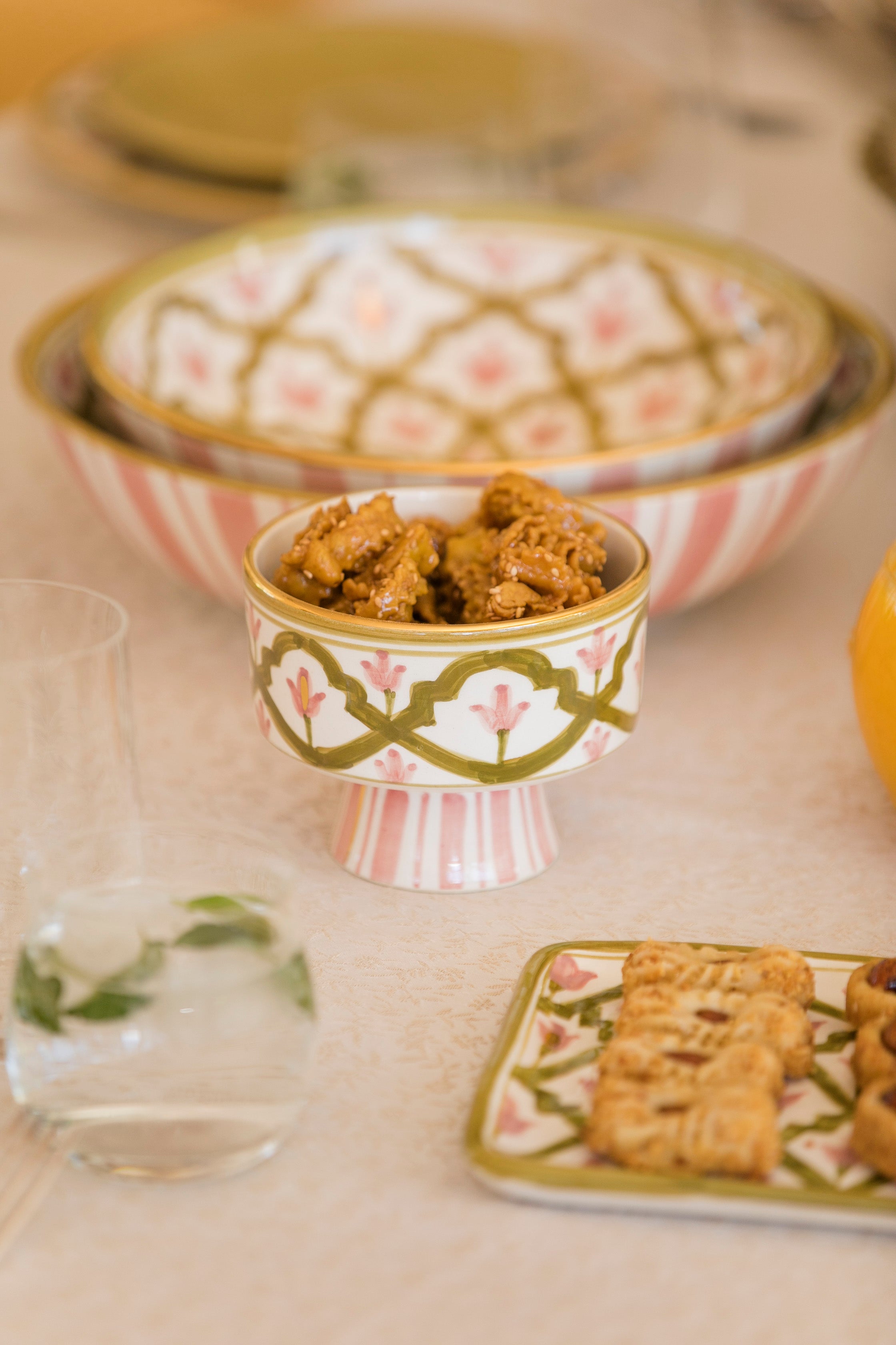 Discover our LMIDA KAKI-BLUSH GOLD APERITIVO BOWLS, small elegant bowls designed to showcase your food. These refined objects perfectly embody the Chabi-Chic style, combining aesthetics and functionality to bring a touch of elegance to your moments of sharing. Whether on a table during an aperitif or at tea time to present chocolates and cakes, these bowls will enhance your culinary delights.