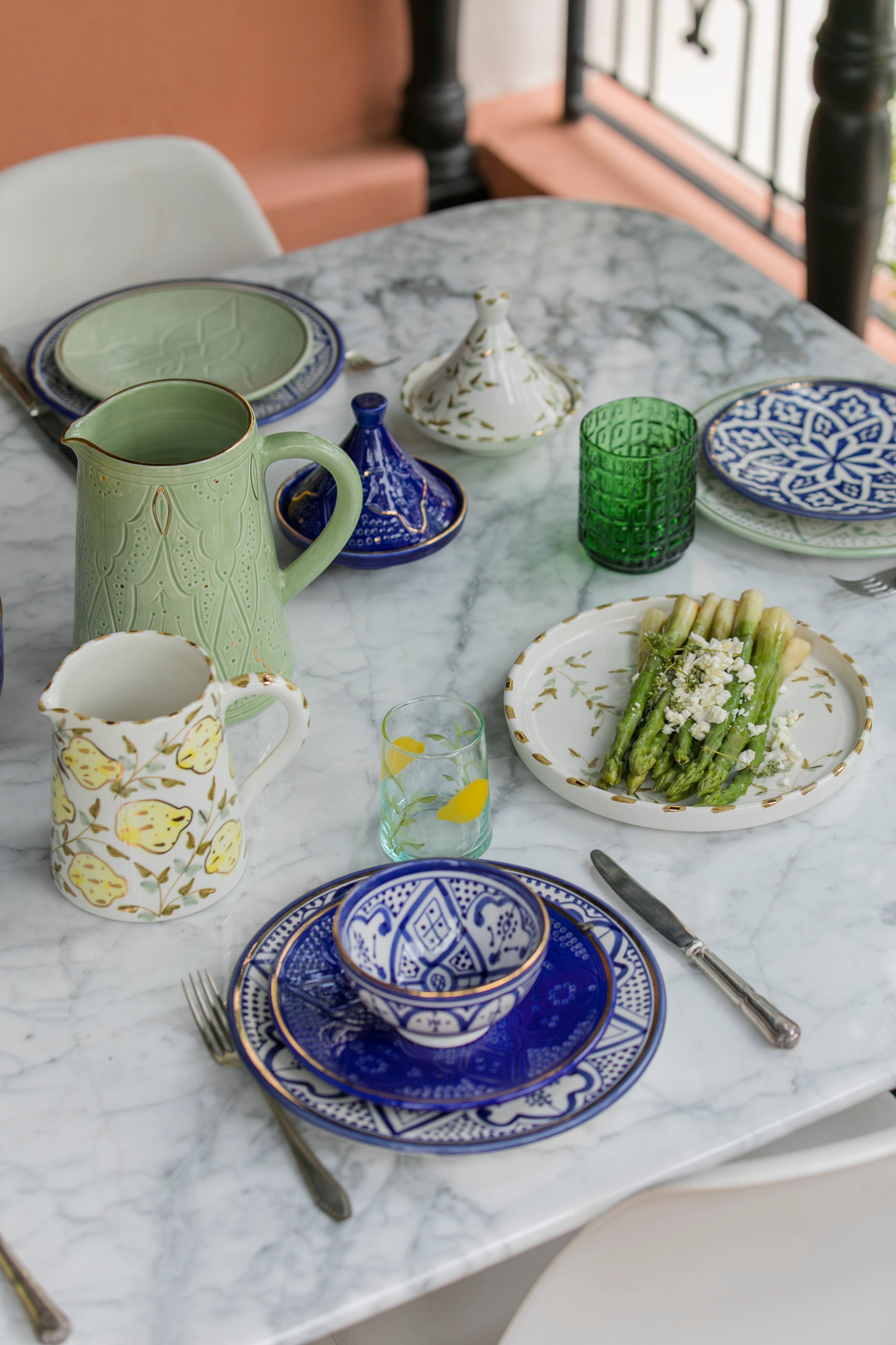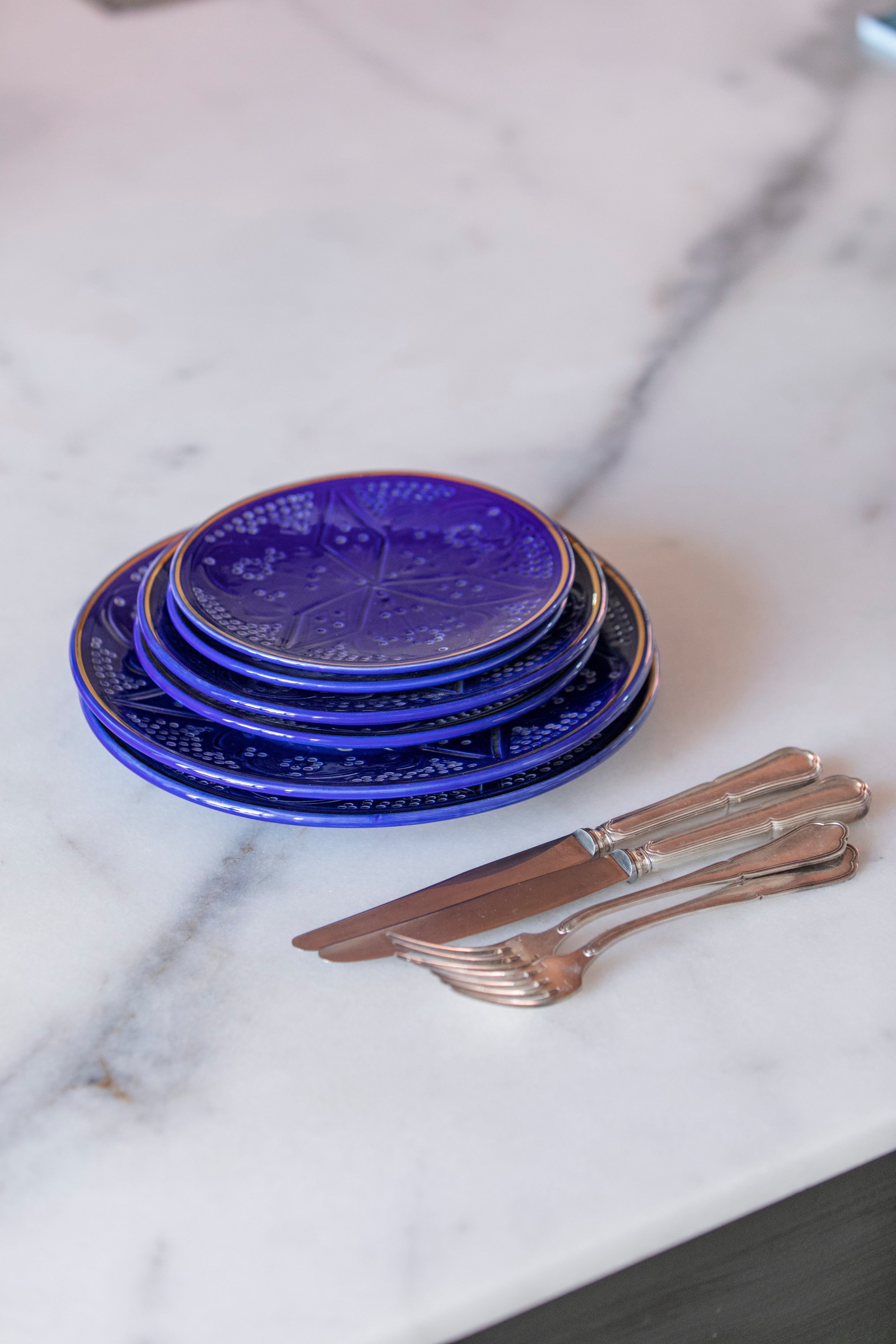 Discover our Assiettes Empreinte Bleu Majorelle, one of our brand's most popular and emblematic pieces. The perfect centerpiece for your table, they offer the ideal playground for Chabi-Chic Mix&Match. Their versatility means you can mix and match them endlessly, whether as a total look or as a mismatch, and the effect is always striking.