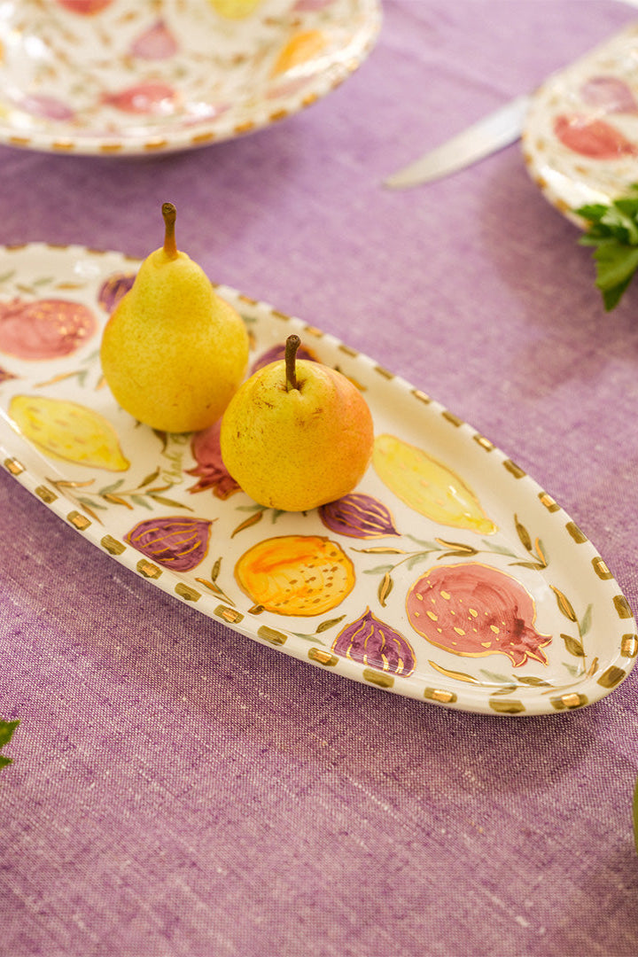 Discover our TUTTI FRUTTI GOLD OVAL TRAY, the ideal accessory to liven up your convivial evenings. This chic tray is designed to showcase your delicious culinary creations with elegance. Perfect for serving tapas, it can also accommodate mini bowls for snacking, allowing you to create varied and fun presentations at your meals.