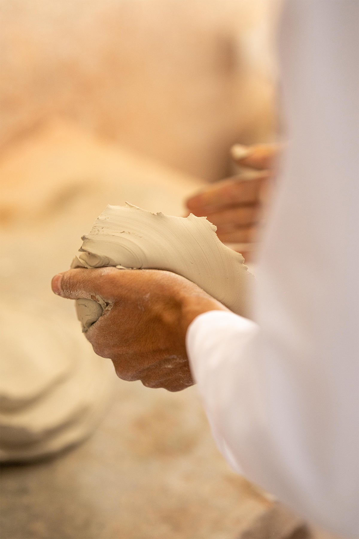 • Fabrication artisanale :   chaque pièce est entièrement façonnée à la main à Marrakech, selon un savoir-faire ancestral. Moulage, peinture, émaillage et triple cuisson , un processus de 10 jours pour révéler toute leur finesse.