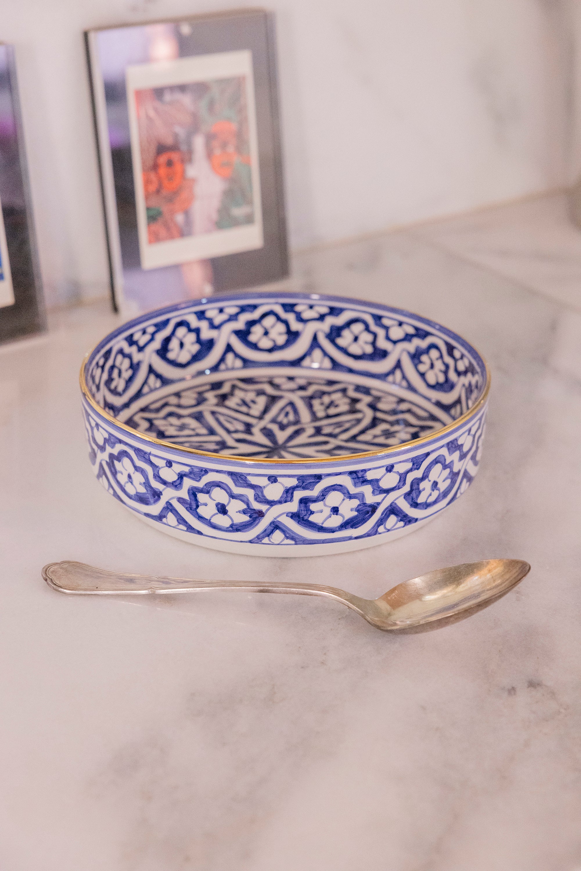 - Fabrication artisanale : Chaque pièce est soigneusement réalisée à la main à travers une dizaine d'étapes essentielles, incluant le moulage, le peinturage des motifs, l'émaillage et trois cuissons, dont la dernière révèle l'éclat de l'or véritable. Ce long processus peut prendre jusqu'à 10 jours. Ce dévouement au détail assure une qualité exceptionnelle tout en mettant en valeur le savoir-faire traditionnel marocain.