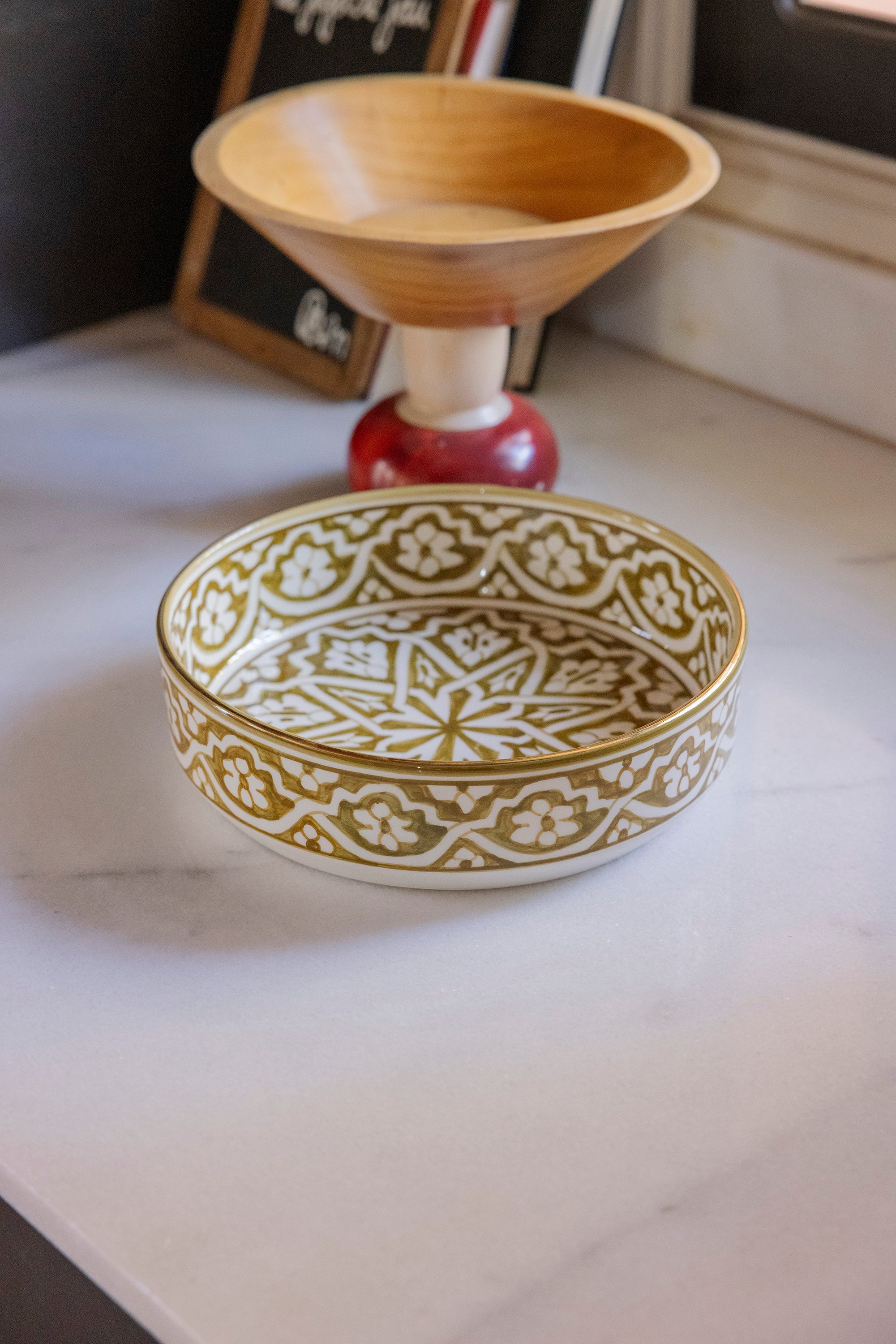Découvrez notre collection de Plats de Service droits Fassia kaki gold, qui rehausse n'importe quel service de table tout en étant surtout très pratiques. Disponibles en trois tailles — petit bol, saladier et grand plat droit — que vous serviez des entrées, des salades ou des plats principaux en sauce, ces plats répondent à tous vos besoins culinaires tout en apportant une touche raffinée à votre table.
