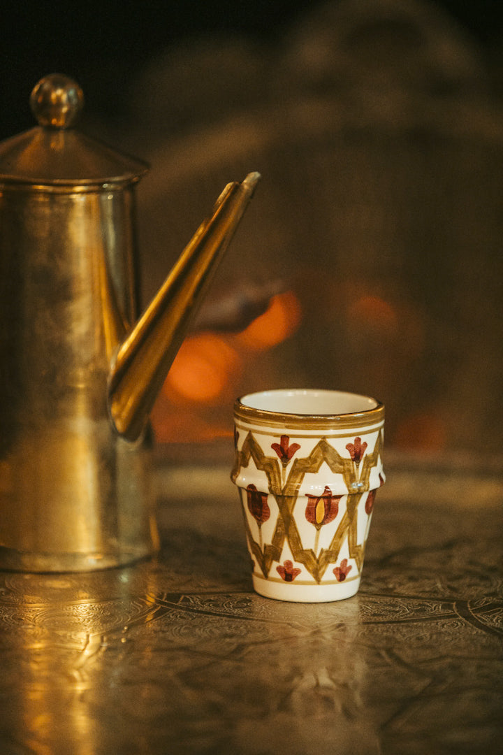Découvrez l'harmonie parfaite entre tradition et modernité avec notre moyenne tasse beldi Lmida, un véritable bijou de l’artisanat marocain. Évoquant le charme intemporel des tasses marocaines traditionnelles, son petit bourellet distinctif facilite une prise en main confortable et élégante. Avec sa capacité généreuse, cette tasse est idéale pour savourer un café allongé ou un thé à la menthe, tout en rehaussant l'expérience de vos moments de convivialité.