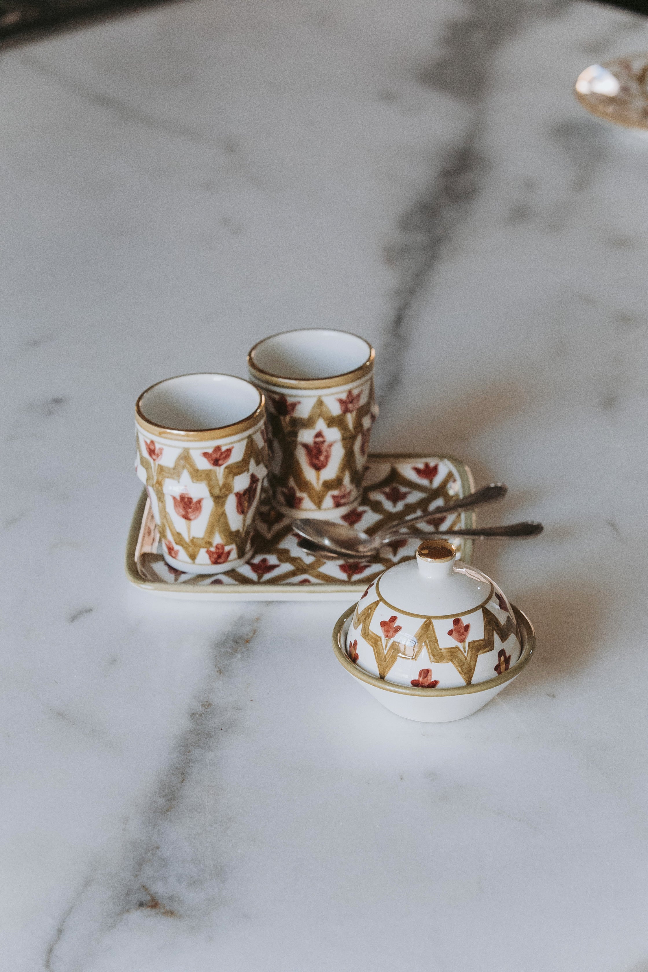 - Fabrication artisanale : Chaque pièce est soigneusement réalisée à la main à travers une dizaine d'étapes essentielles, incluant le moulage, le peinturage des motifs, l'émaillage et trois cuissons, dont la dernière révèle l'éclat de l'or véritable. Ce long processus peut prendre jusqu'à 10 jours. Ce dévouement au détail assure une qualité exceptionnelle tout en mettant en valeur le savoir-faire traditionnel marocain.