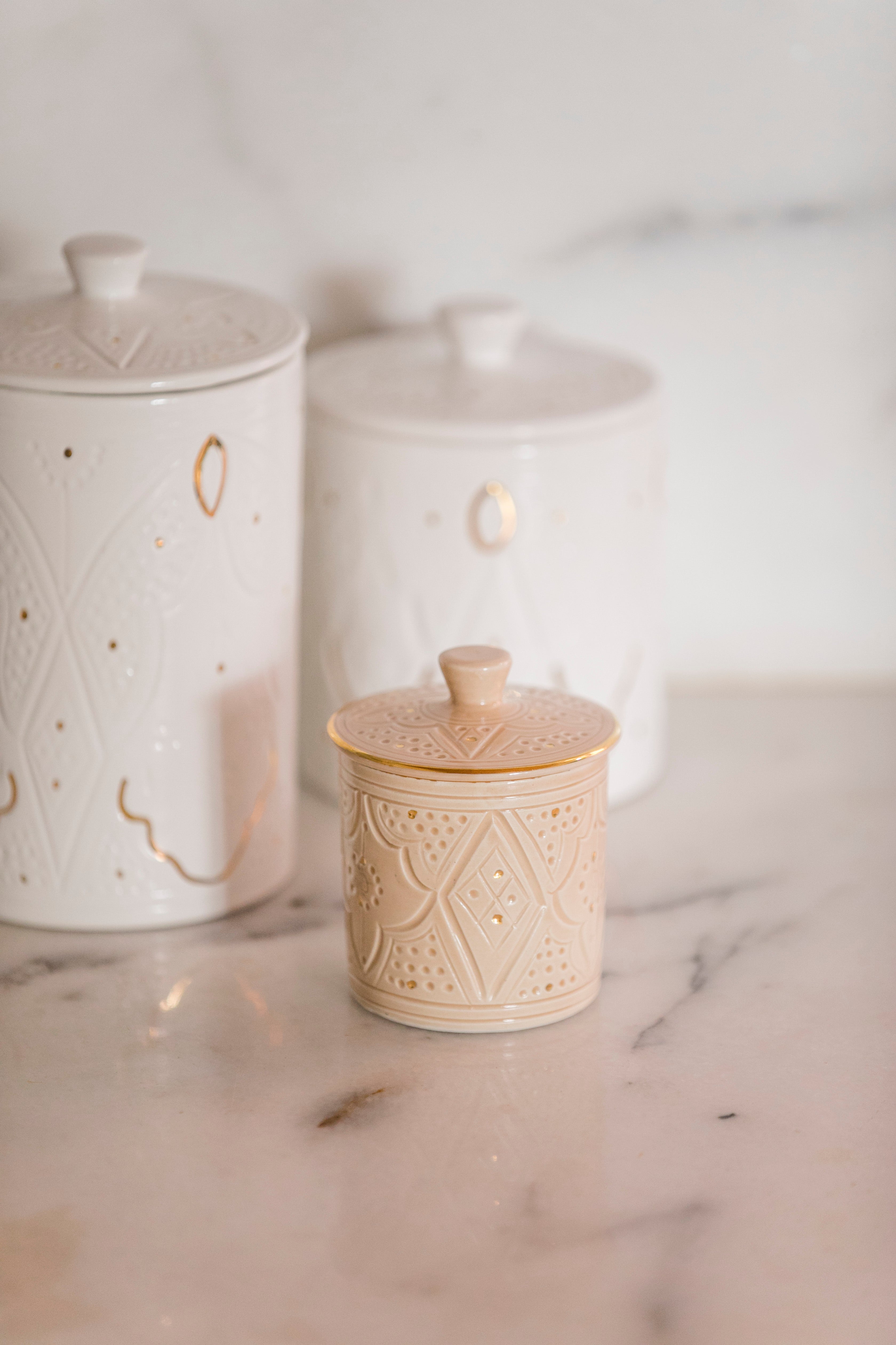 - Fabrication artisanale : Chaque pièce est soigneusement réalisée à la main à travers une dizaine d'étapes essentielles, incluant le moulage, le peinturage des motifs, l'émaillage et trois cuissons, dont la dernière révèle l'éclat de l'or véritable. Ce long processus peut prendre jusqu'à 10 jours. Ce dévouement au détail assure une qualité exceptionnelle tout en mettant en valeur le savoir-faire traditionnel marocain.