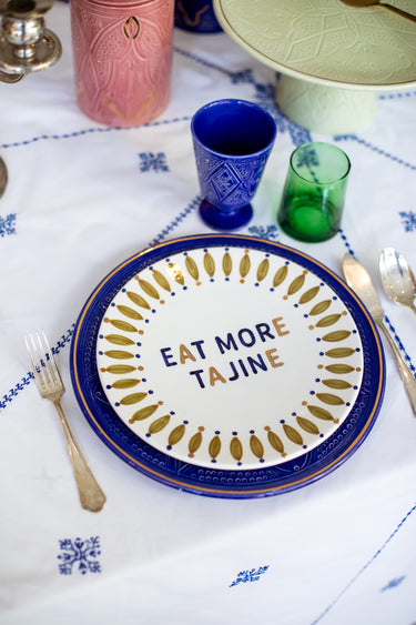 Découvrez l'harmonie parfaite entre tradition et modernité avec notre ASSIETTE EAT MORE TAJINE, un véritable bijou de l’artisanat marocain. Évoquant le charme intemporel des tasses marocaines traditionnelles, son petit bourrelet distinctif facilite une prise en main confortable et élégante.