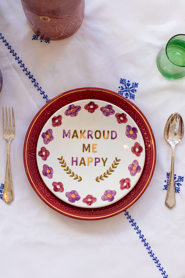 Découvrez l'harmonie parfaite entre tradition et modernité avec notre ASSIETTE MAKROUDH ME HAPPY GOLD, un véritable bijou de l’artisanat marocain. Évoquant le charme intemporel des tasses marocaines traditionnelles, son petit bourrelet distinctif facilite une prise en main confortable et élégante.