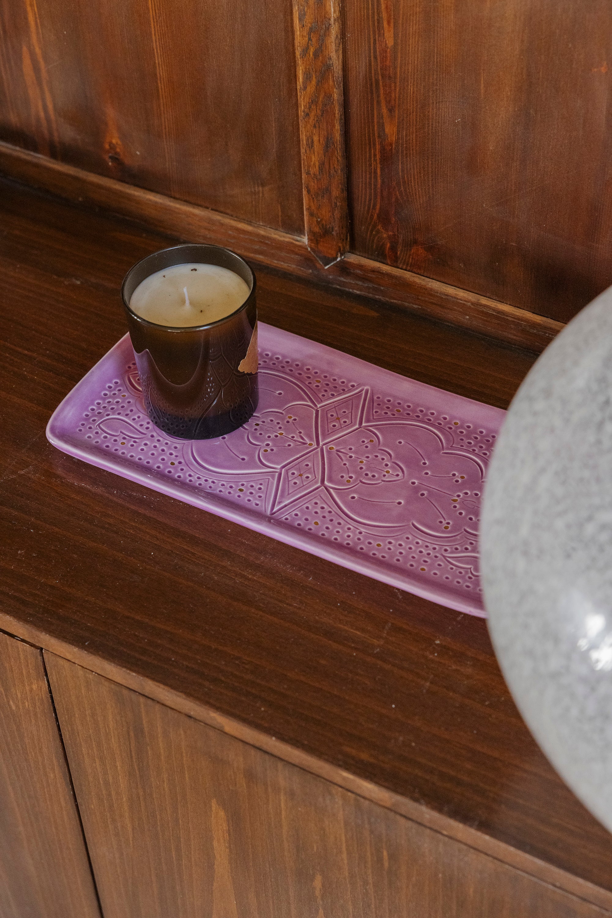 Offrez à vos douceurs le plateau qu'elles méritent avec notre PLATEAU DÉCORATIF LONG EMPREINTE LILAS GOLD. Idéal pour présenter vos cakes, gâteaux ou même des quiches, ce plat allie élégance et praticité. Son design artisanal et raffiné apporte une touche de charme à votre table, que ce soit pour des occasions spéciales ou un goûter en famille. Ce plat peut également servir de plateau décoratif dans d'autres pièces de la maison, comme sur une belle table basse ou dans une salle de bain.