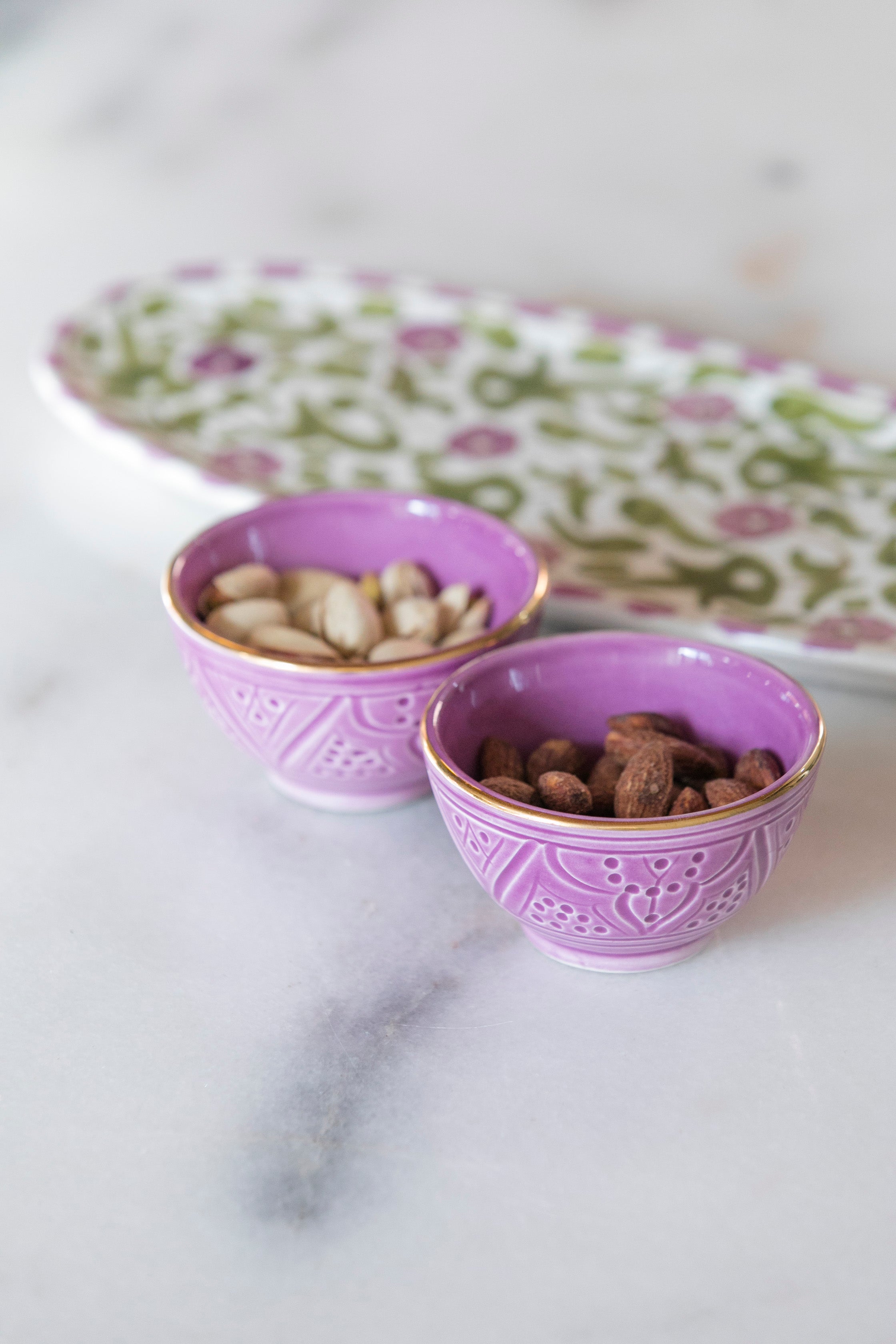 Apportez une touche chaleureuse et conviviale à vos apéritifs avec nos Mini Bols à Snacking Empreinte Lilas. Conçus pour accueillir vos snacks, olives, noix ou amuse-bouches, ces petits bols sont également parfaits pour présenter vos sauces préférées.