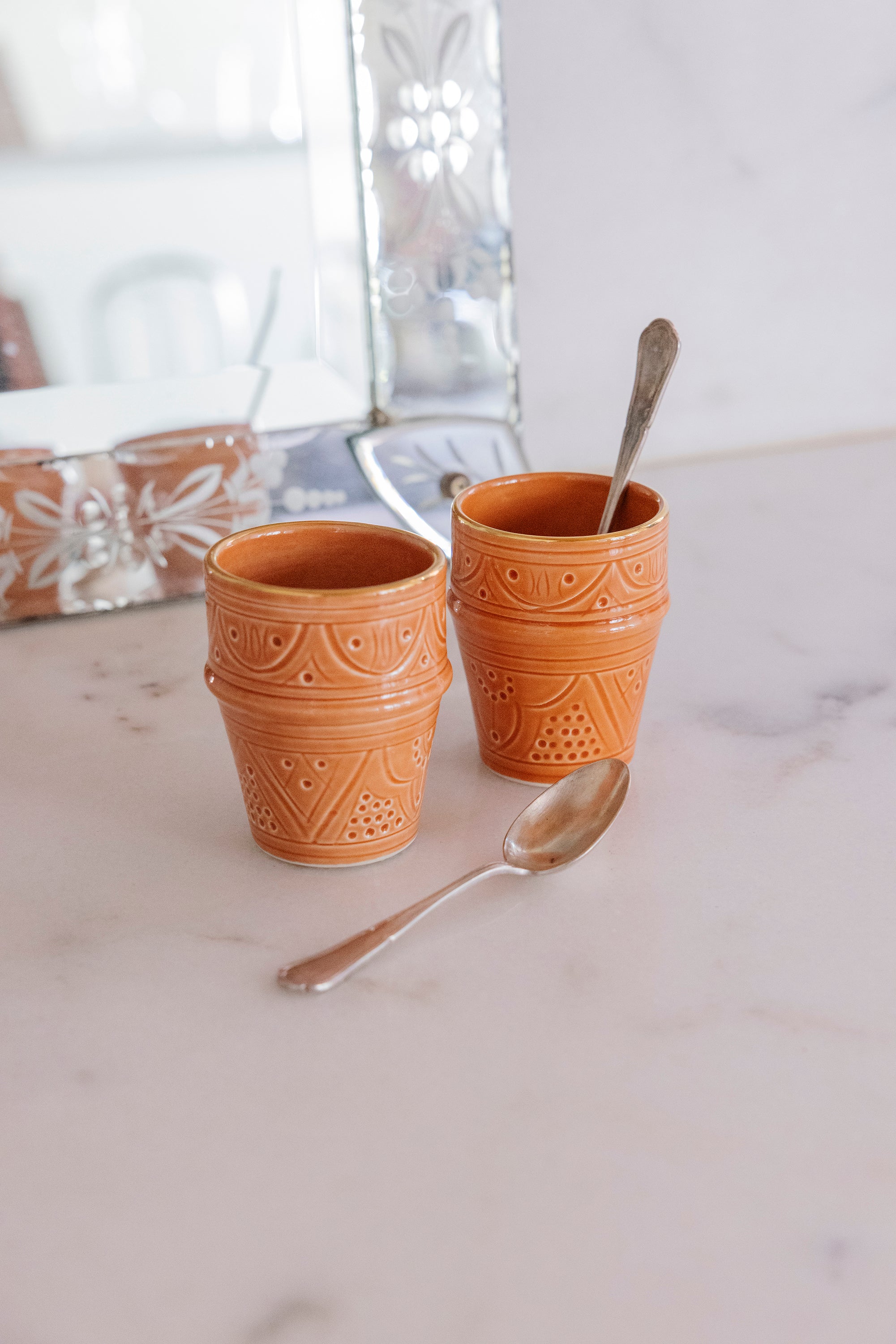 Savourez votre café ou votre thé où que vous soyez, dans cette Moyenne tasse moyenne tasse beldi empreinte marsala gold  élégante, inspirée de la tradition marocaine. Une pause raffinée pour un espresso intense ou un café délicat.