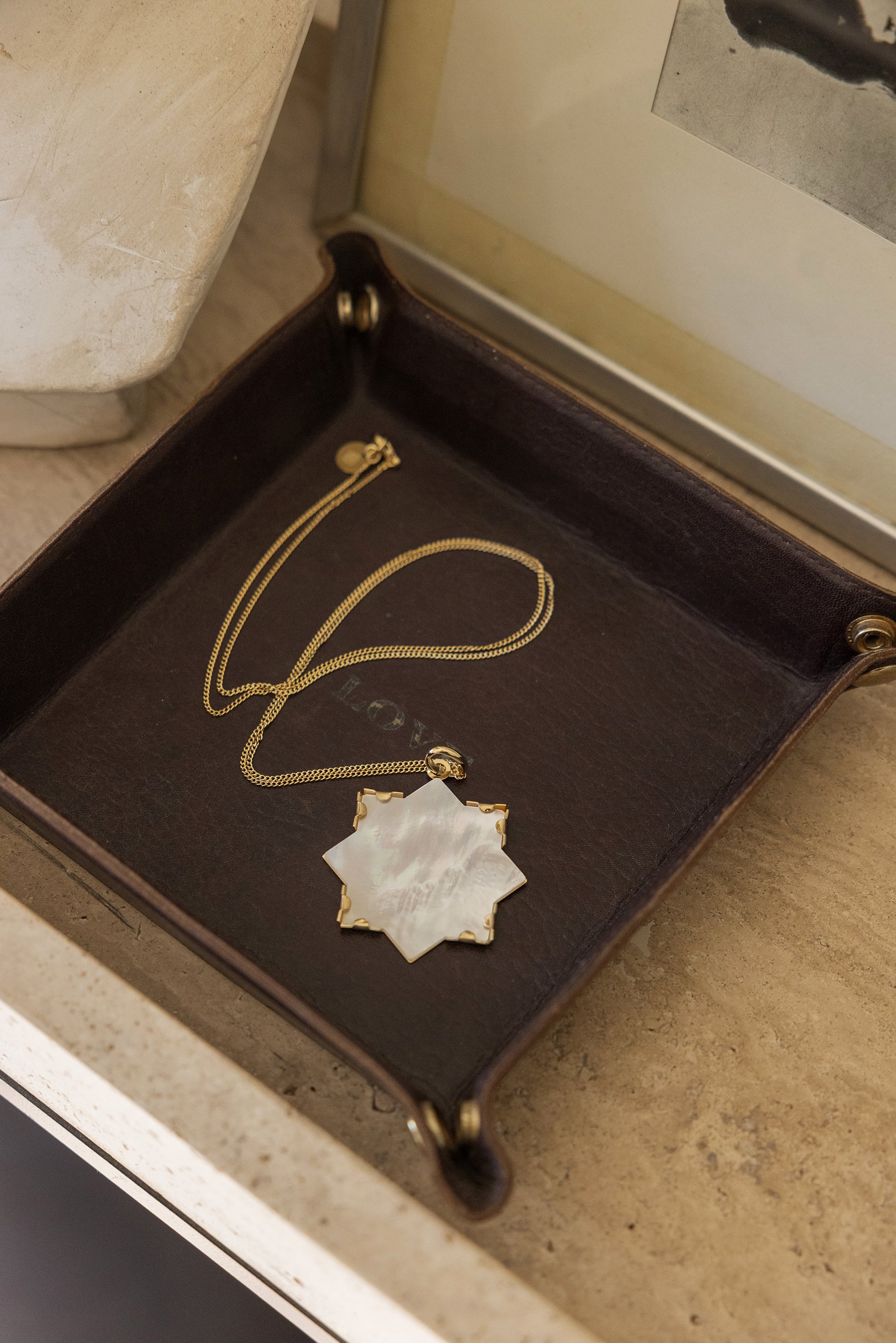 la longueur de la chaîne offre du mouvement. et de la finesse à ce bijou. L’étoile brille de toute sa nacre et se balance au gré de vos pas…