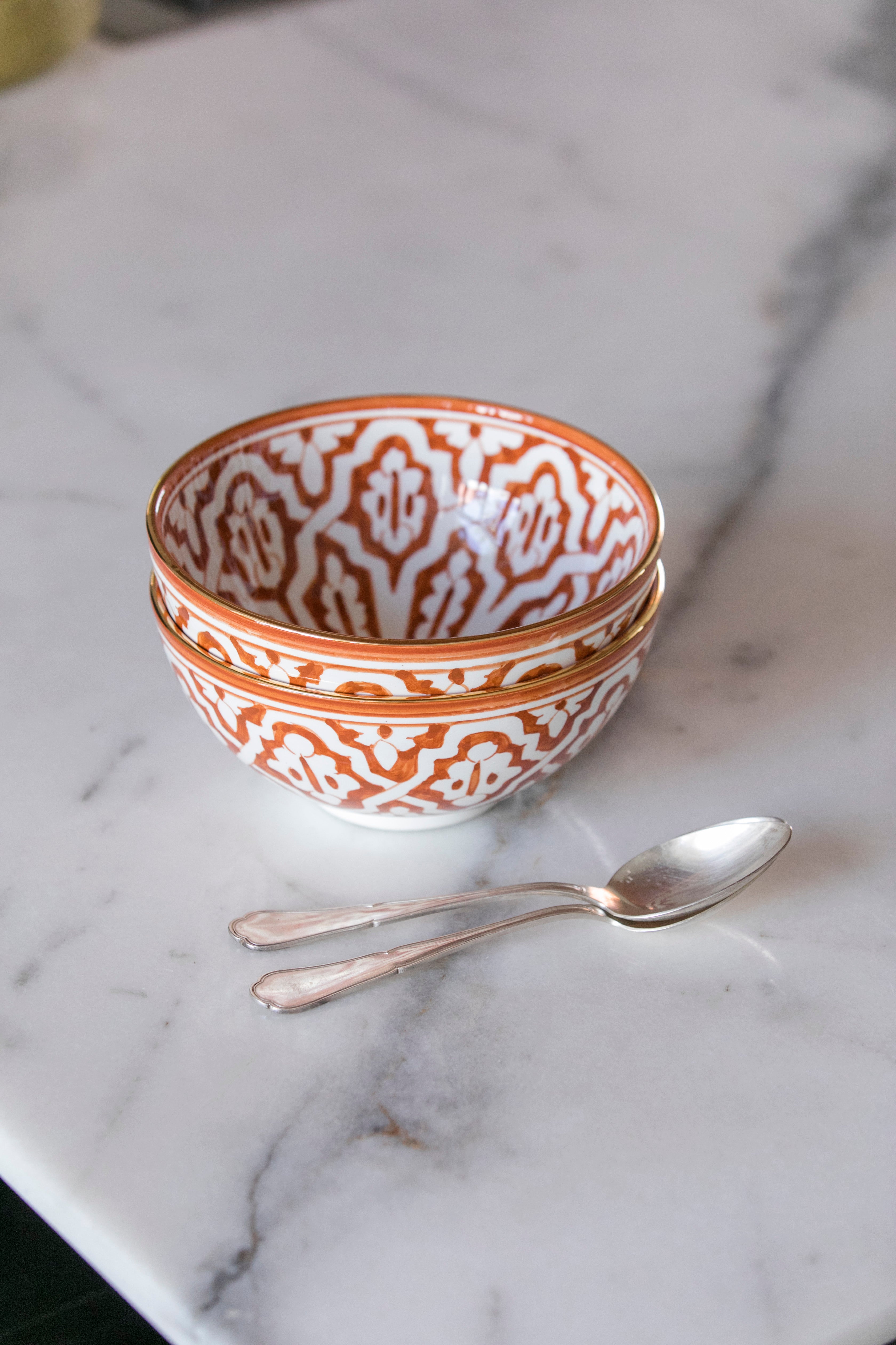Fabrication artisanale : Chaque pièce est soigneusement réalisée à la main à travers une dizaine d'étapes essentielles, incluant le moulage, le peinturage des motifs, l'émaillage et trois cuissons, dont la dernière révèle l'éclat de l'or véritable. Ce long processus peut prendre jusqu'à 10 jours. Ce dévouement au détail assure une qualité exceptionnelle tout en mettant en valeur le savoir-faire traditionnel marocain.