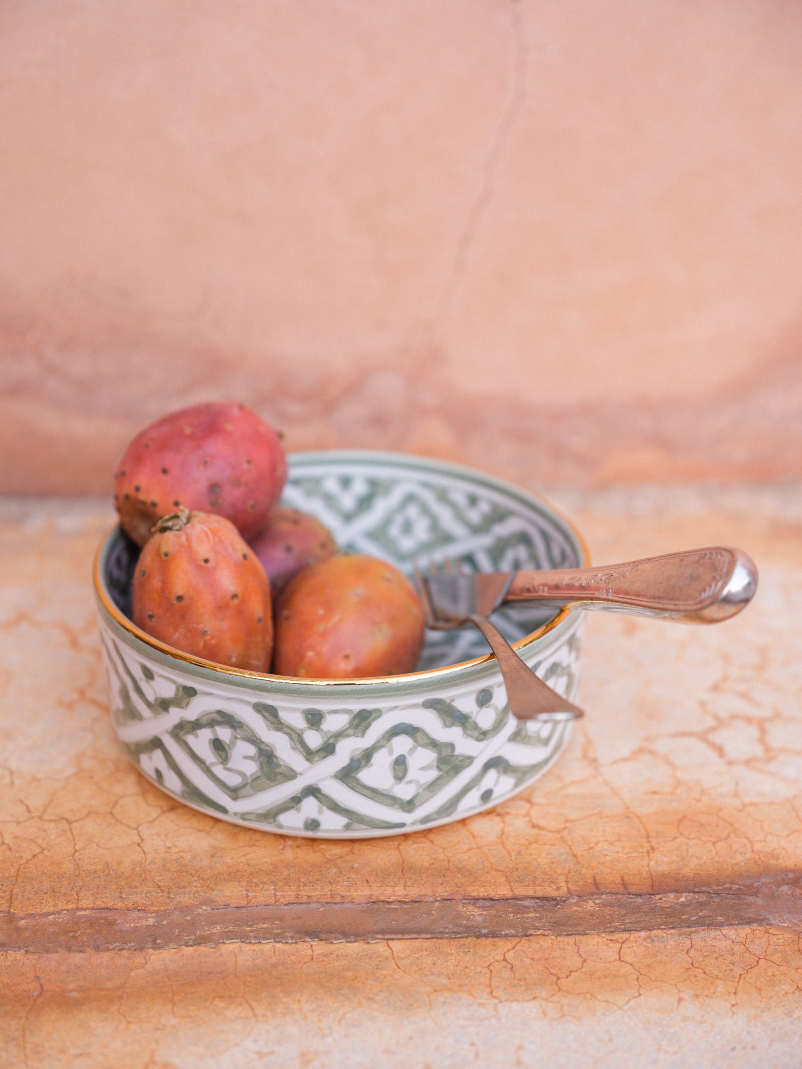 - Fabrication artisanale : Chaque pièce est soigneusement réalisée à la main à travers une dizaine d'étapes essentielles, incluant le moulage, le peinturage des motifs, l'émaillage et trois cuissons, dont la dernière révèle l'éclat de l'or véritable. Ce long processus peut prendre jusqu'à 10 jours. Ce dévouement au détail assure une qualité exceptionnelle tout en mettant en valeur le savoir-faire traditionnel marocain.